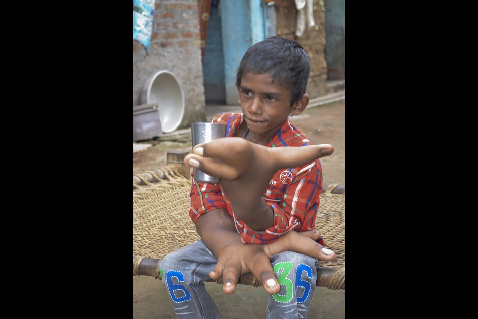 «Δυσκολευόταν ακόμη και να φάει, είμασταν αναγκασμένοι να τον τρέφουμε εμείς» συμπληρώνει ο πατέρας του. Σήμερα ο 8χρονος Ινδός μπορεί να πιάσει πράγματα με τα δυό του δάχτυλα και να σηκώσει ένα ποτήρι νερό.